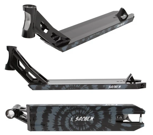 The Sachem XT features a new light weight 83-degree extruded headtube that allows for maximum foot space and crook/noseblunt room. The dropouts are angled cut with optional square plugs (5.6” deck). The deck is surprisingly light but exceptionally strong and is designed to withstand the heaviest of riding. The balanced feeling of the deck makes for a comfortable cruise no matter what terrain you choose.