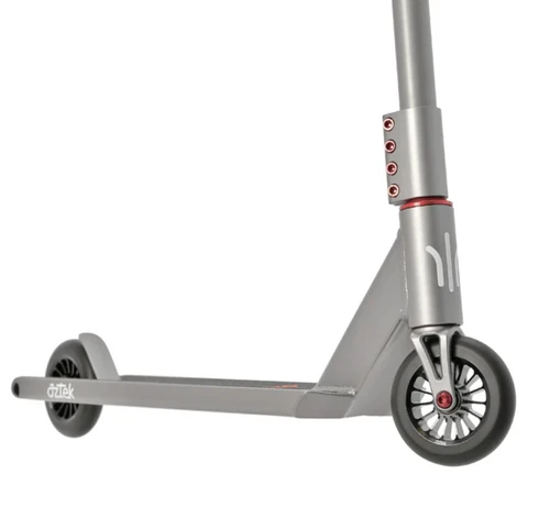 Aztek Pro Scooters took their incredibly popular Architect Complete and updated it for 2024 by adding new and improved Architect 2 Wheels, new headset, and fresh new satin colorways. The Architect Complete is their all-new entry level street scooter. They created a 5.5″ by 21″ deck with solid dropouts for ultimate grinding. The chromoly bars and fork and 110mm high-rebound wheels will hold up to any trick you can throw at it. SCS compression keeps it all tight. The perfect scooter for the novice street shredder.