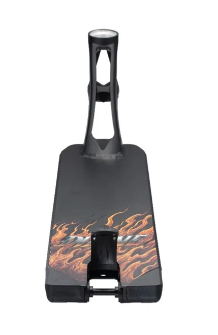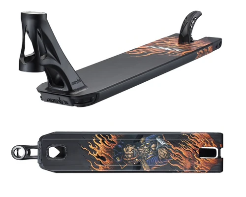 His deck is covered in a Matte Black quality paint and wrapped in his custom “Flamin pirate” graphic. The Graphic represents Didine, a pirate in life free to live and ride the way he wants and the flames represent his passion for it.
