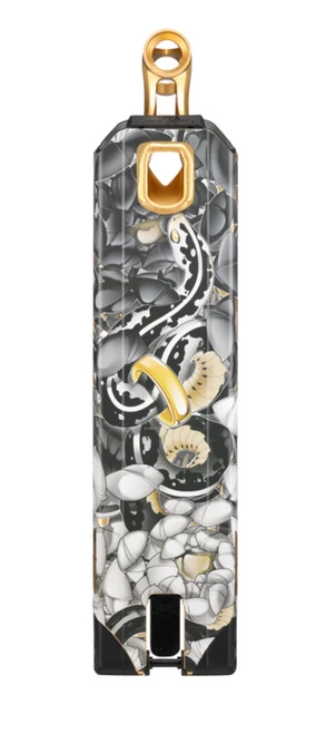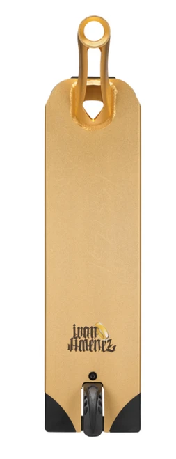 His deck is covered in “King Gold’ anodized colorway wrapped in his custom graphic. The Graphic holds many meanings to Ivan, Flowers in black white represent duality, the snake is a reference to the seven chakras tattoo, waves is references to the famous waves spot in Barcelona where he learnt to ride and the ring is what he wears, gifted to him by his grandfather and kisses after every big trick. He also has a secret object in the design for someone important in his life, wonder if you can figure it out!