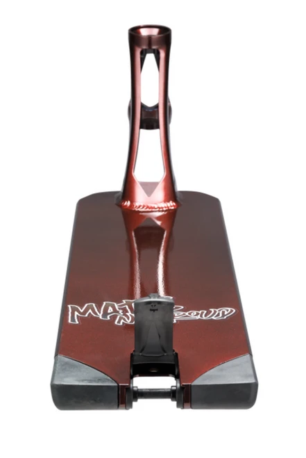 His deck is covered in a “Lava Red ” quality paint and wrapped in his vibrant graphic The Graphic represents a mix of who Matis is. The mountains and lake represent Léman lake where he was born. Moto is his second big passion and the infamous FIFTY HURRICAN FAKIE FIFTY FLAIR from his Welcome to edit and Trick of the year