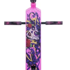 The Invert Supreme Pro Scooter is built around a 4.3″ by 19.5″ deck with an 82.5 degree headtube angle. Because the deck does not have boxed ends, we consider the Invert pro scooter deck to be a park deck but it’s equally at home at the skatepark or in your hood. Entry Level scooter decks that are 19-19.99″ long will be best suited for the younger riders who are relatively new to the sport. The Supreme complete features standard outer diameter T-Bars that are 22.8″ tall by 20.5″ wide. Bars this size are ideal for riders who are 4.5 to 5 feet tall. Bars and forks are tied together via an IHC compression system, which is a favorite among pro scooter riders. Finally, the Supreme complete rolls on 110mm x 24mm wheels, which are the most popular size among riders.