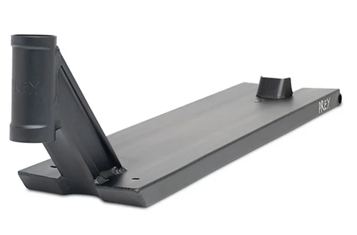 Check out the largest pro scooter deck from Prey! The Tomorrow Deck features a completely flat bottom that enables riders to grind smoothly on the roughest of surfaces. The back of the deck is boxed, and uses pegs as dropouts. The pegs make locking into grinds a breeze, whether it’s a 50-50, or a feeble. This version of the Tomorrow is 6.7″ wide, which offers the perfect balance between grind space, and maneuverability. You won’t be disappointed in the performance and feel of this deck whether on the street or at the skatepark throwing tricks!Â