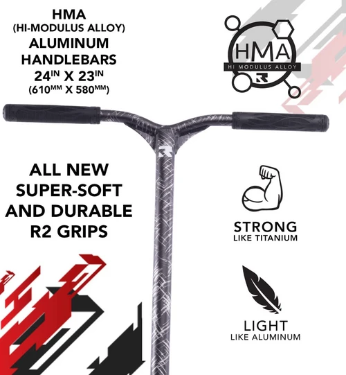 - HMA Aluminum Invictus 2 handlebars – 610mm (24″) tall x 580mm (22.8″) wide