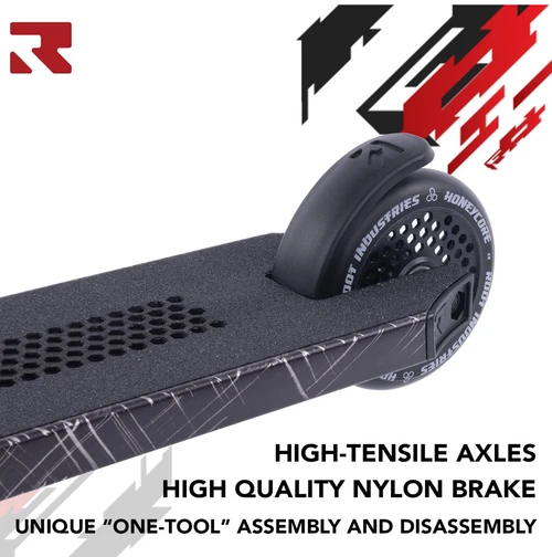 The main goal that Root Industries set out to achieve with the Invictus 2 range of complete scooters, was to give the rider a weapon that would allow them to progress quicker. The Invictus 2 achieves this with an even more perfectly balanced deck than the first iteration of the product, which is designed to maximize foot-space and allow for optimal comfortability, while remaining compact and allowing for quick, smooth stunts.