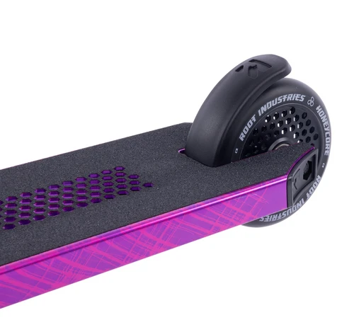 The main goal that Root Industries set out to achieve with the Invictus 2 range of complete scooters, was to give the rider a weapon that would allow them to progress quicker. The Invictus 2 achieves this with an even more perfectly balanced deck than the first iteration of the product, which is designed to maximize foot-space and allow for optimal comfortability, while remaining compact and allowing for quick, smooth stunts.
