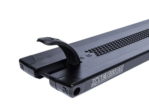 The Xtension deck is, at its core, a standard scooter deck. However, with the implementation of extension rails that slide elegantly onto the sides of the deck, the Xtension deck can be either 4.75”, 5.5”, or 6” in width. Each Xtension rail is simple to swap out and robust enough to retain its shape and stands up to the most demanding riding and terrains. The Xtension rails remain rigid and maintain the ability to be added to or removed from the sides of the main deck frame.