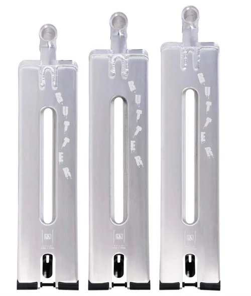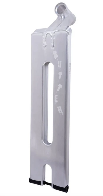 - As the name suggests the Butter deck is ready to dominate any surface with buttery smooth precision! The Butter oozes perfection from the new forged head tube, low profile flat deck with radius edge, Chromoly encased nylon drop outs, 6 position wear rotation system incorporating wheel spacers and nut. Supplied with a brake and a fender option, you decide!